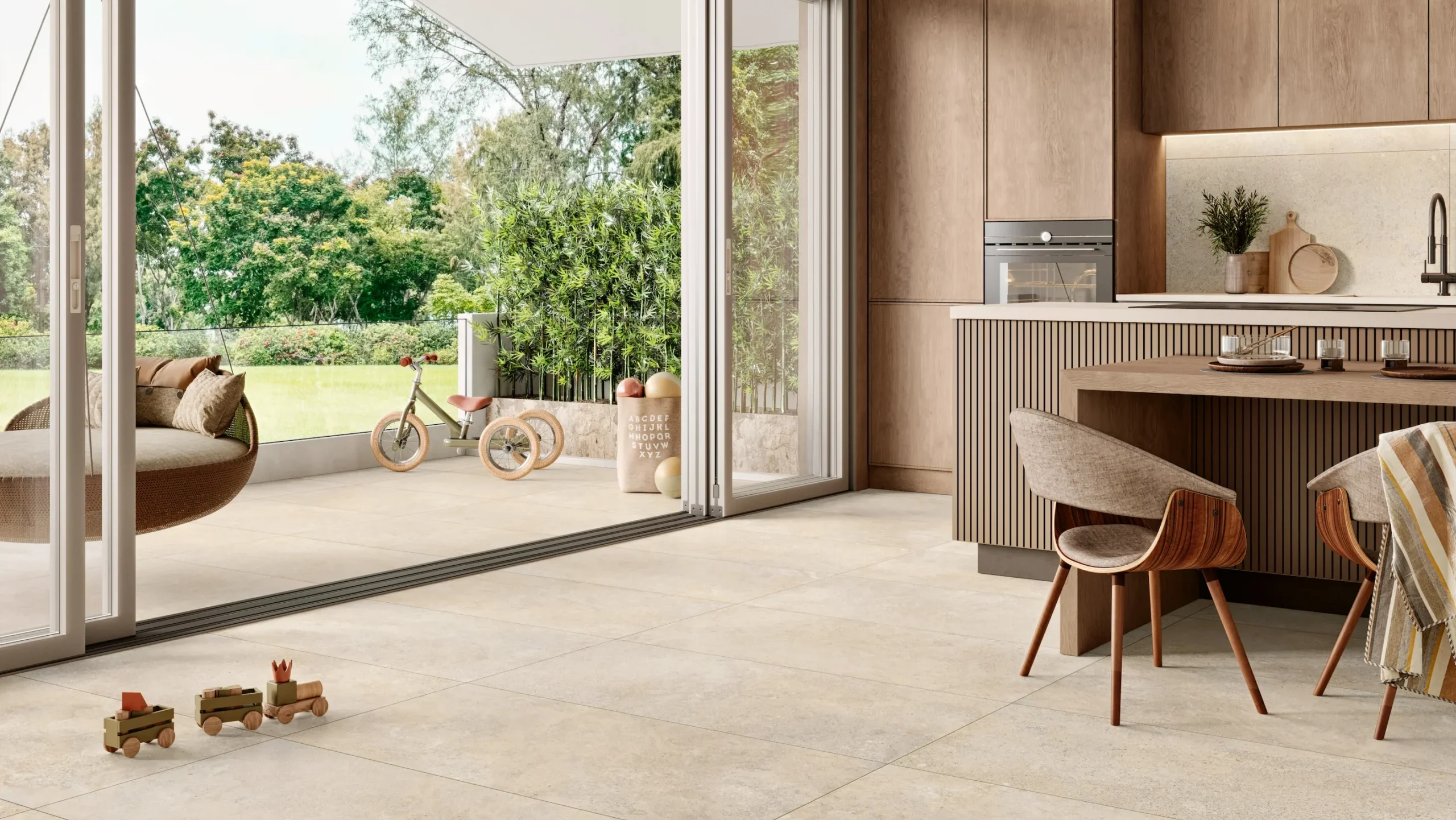 Von manchen Indoor-Serien, gibt es auch die passende Outdoor-Serien. So haben Sie die Möglichkeit, den Wohnraum-Boden bis auf die Terrasse zu verlängern und hätten somit eine gigantische Flächenwirkung.