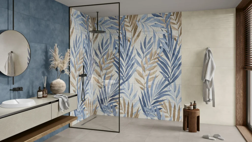 Holz mit Stein, Stein mit Beton-Fliesen, oder sogar Tapeten-Optik mit Metall-Optik. Das können Sie miteinander kombinieren! Fliese macht all das möglich.